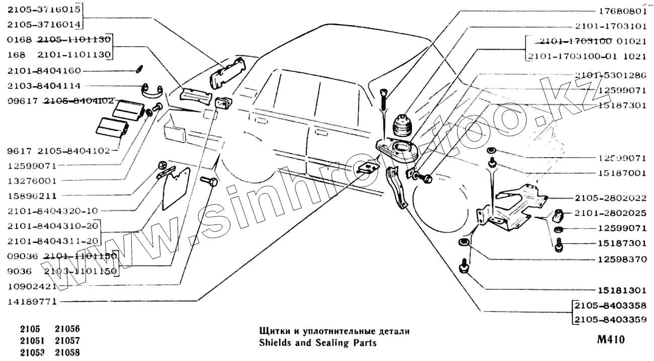 Каталог запасных частей к технике: ВАЗ-2104, 2105. Щитки и уплотнительные детали