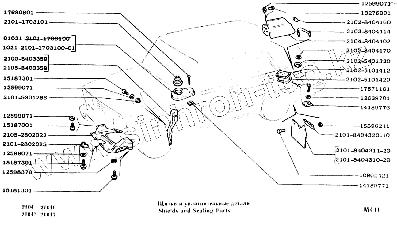Каталог запасных частей к технике: ВАЗ-2104, 2105. Щитки и уплотнительные детали