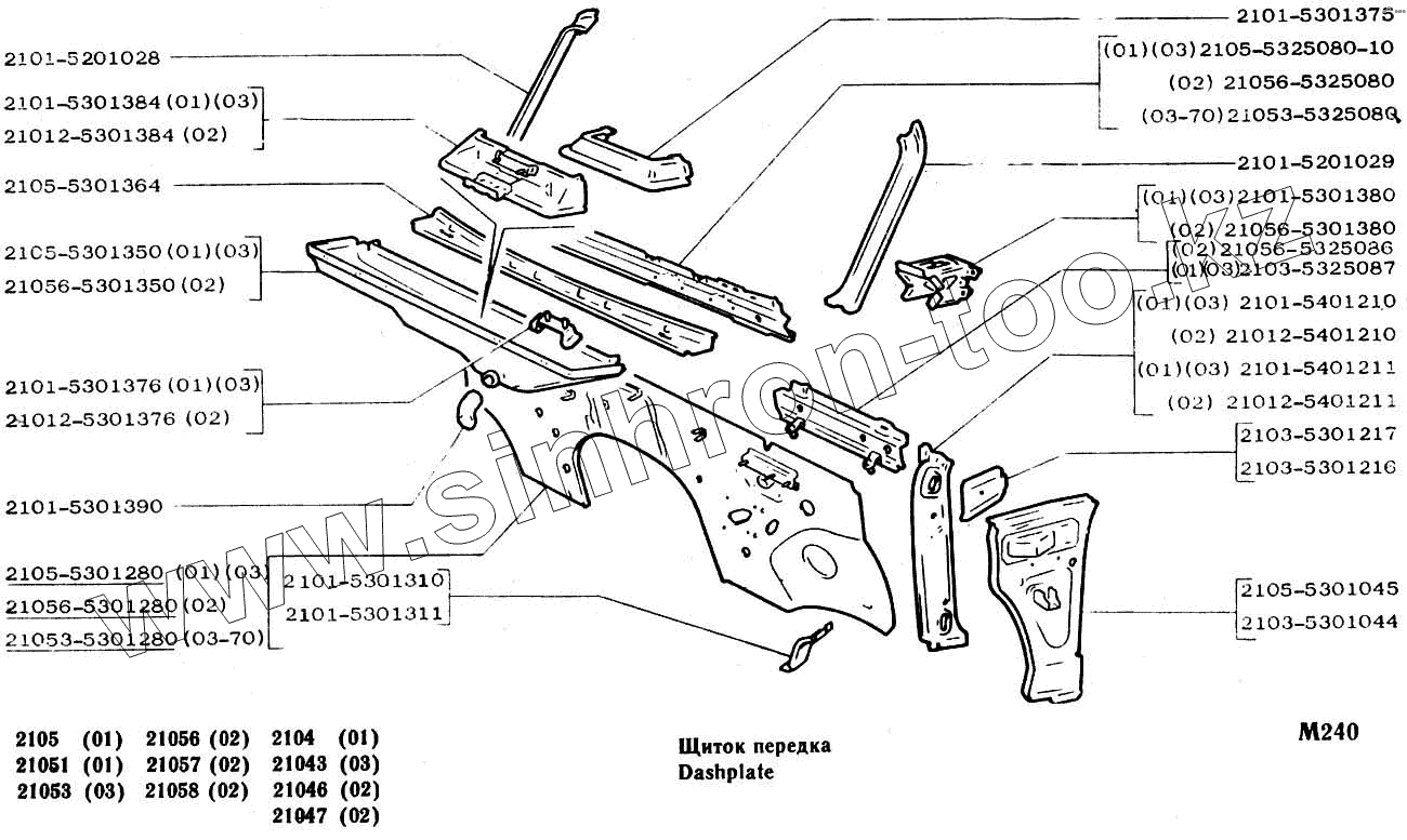 Каталог запасных частей к технике: ВАЗ-2104, 2105. Щиток передка
