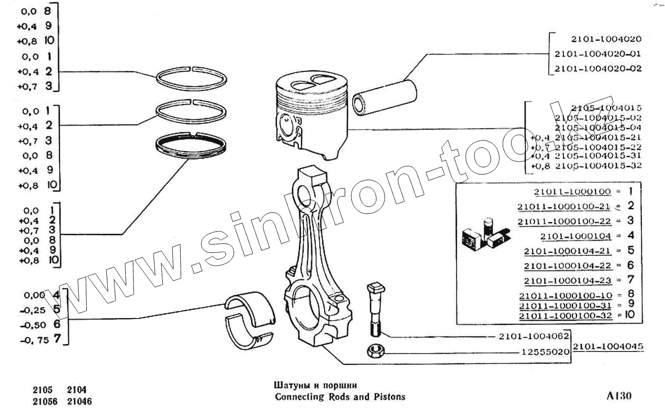 Каталог запасных частей к технике: ВАЗ-2104, 2105. Шатуны и поршни