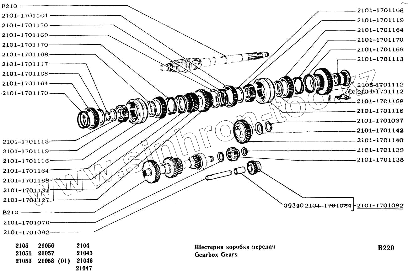 Каталог запасных частей к технике: ВАЗ-2104, 2105. Шестерни коробки передач