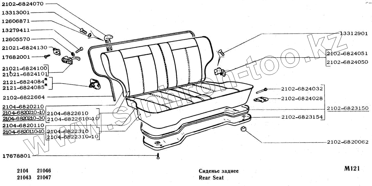 Каталог запасных частей к технике: ВАЗ-2104, 2105. Сиденье заднее