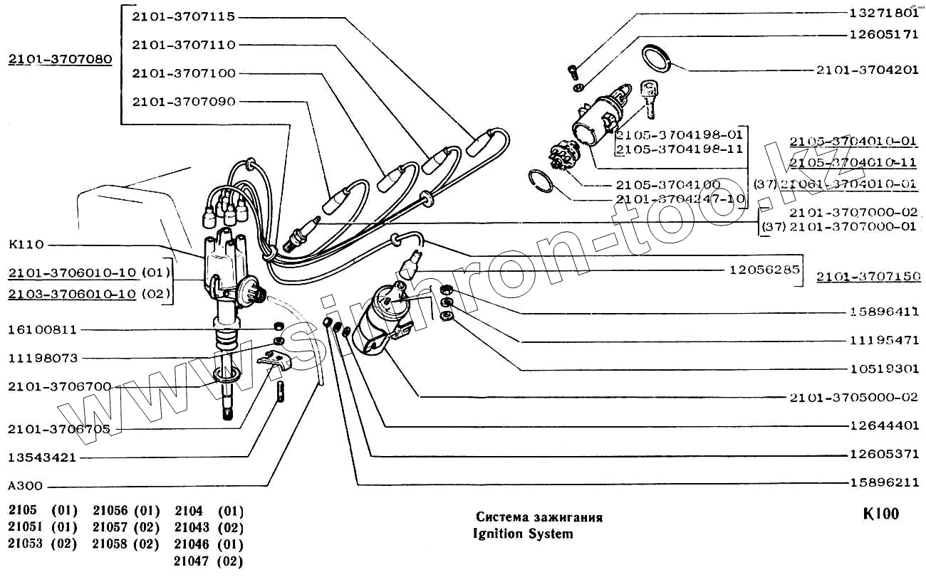 Каталог запасных частей к технике: ВАЗ-2104, 2105. Система зажигания