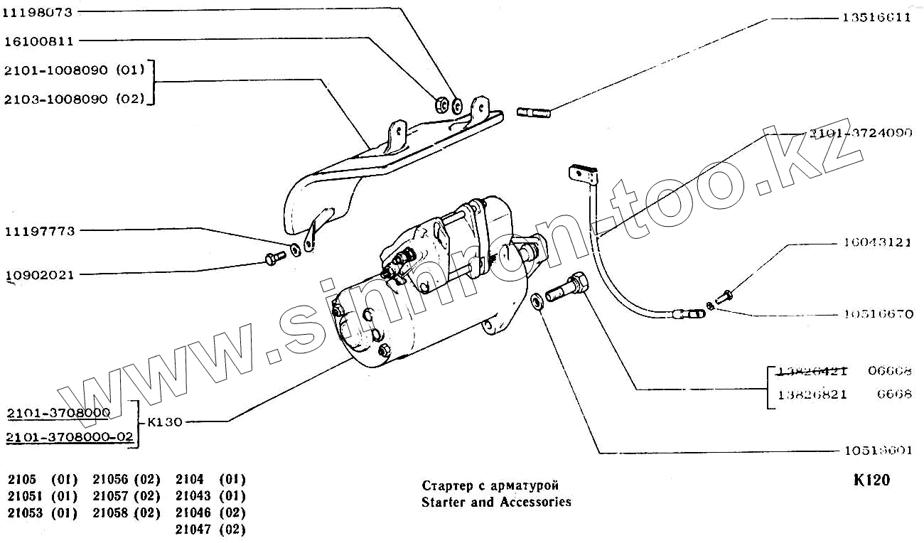 Каталог запасных частей к технике: ВАЗ-2104, 2105. Стартер с арматурой