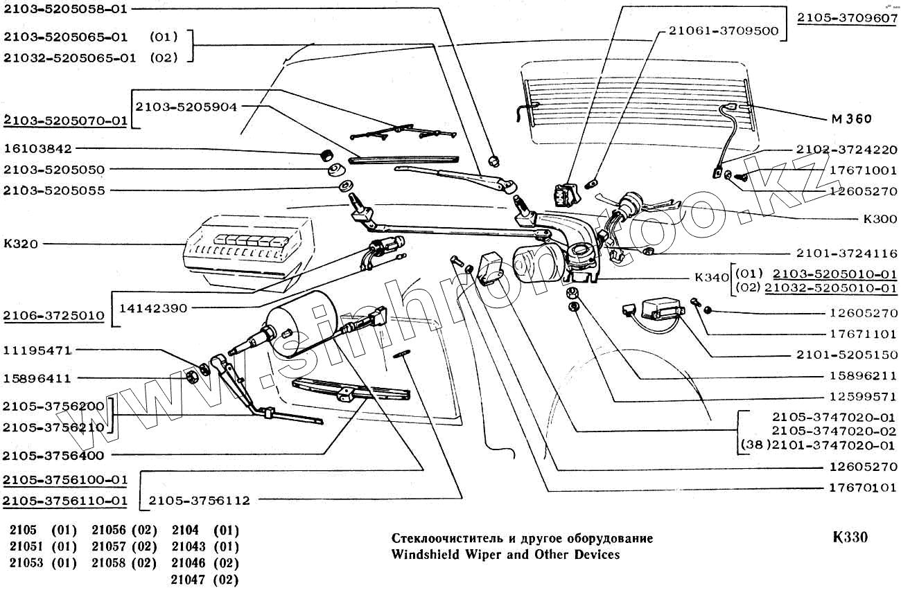 Каталог запасных частей к технике: ВАЗ-2104, 2105. Стеклоочиститель и другое оборудование
