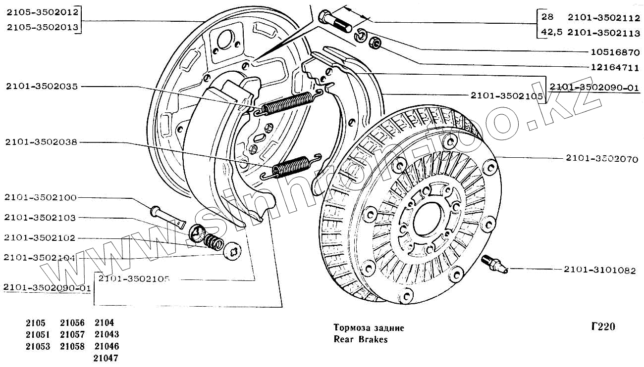 Каталог запасных частей к технике: ВАЗ-2104, 2105. Тормоза задние