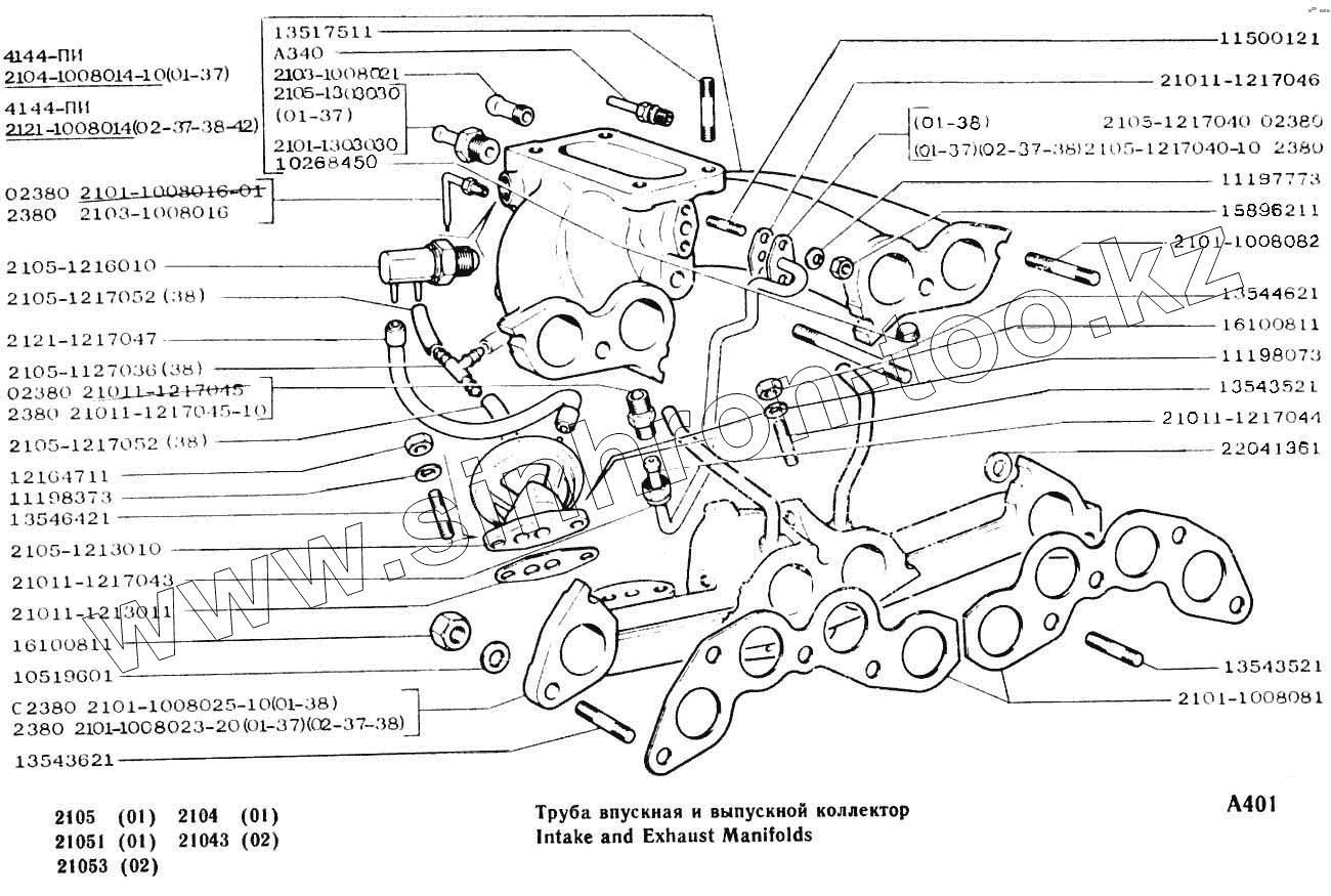 Каталог запасных частей к технике: ВАЗ-2104, 2105. Труба впускная и выпускной коллектор