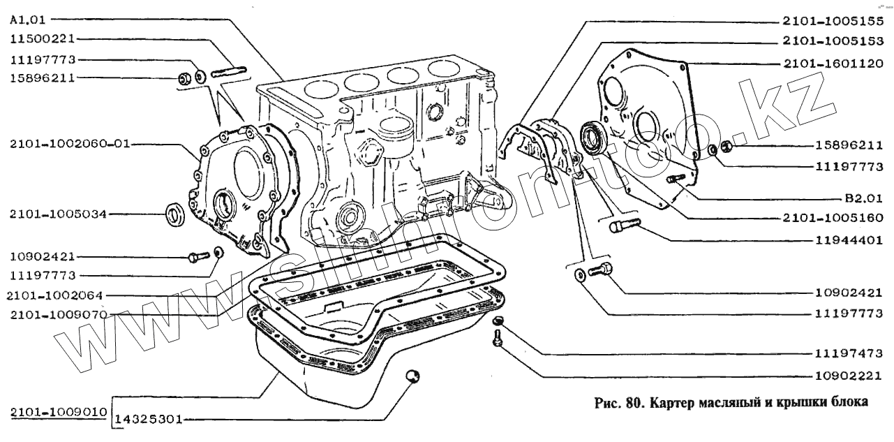 Каталог запасных частей к технике: ВАЗ-2105. Картер масляный и крышки блока