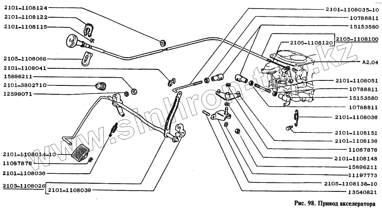 Каталог запасных частей к технике: ВАЗ-2105. Привод акселератора
