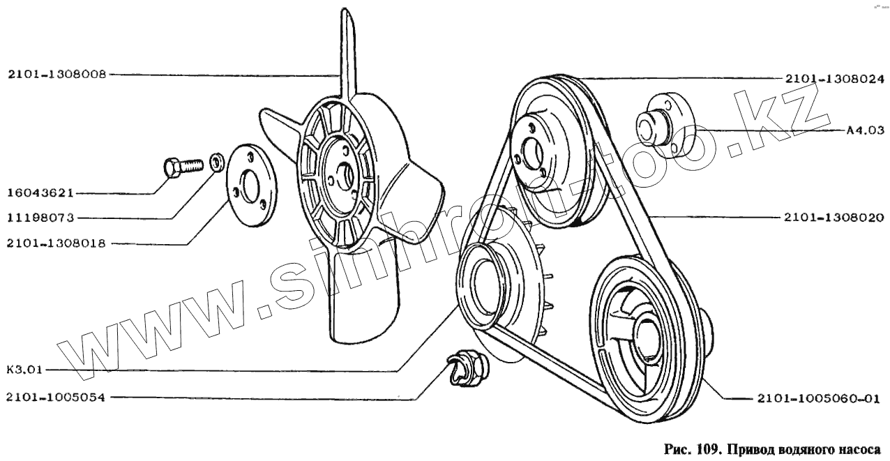Каталог запасных частей к технике: ВАЗ-2105. Привод водяного насоса