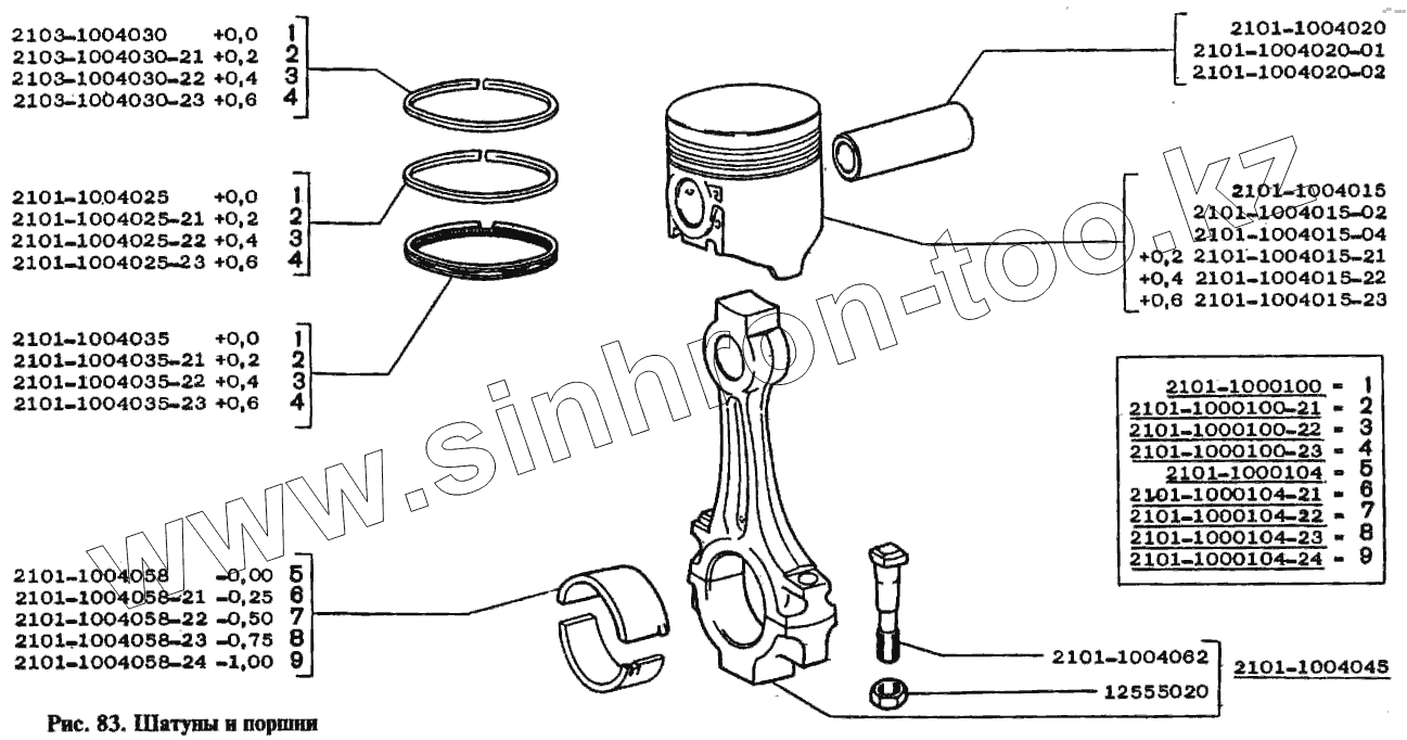 Каталог запасных частей к технике: ВАЗ-2105. Шатуны и поршни
