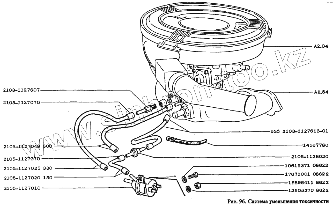 Каталог запасных частей к технике: ВАЗ-2105. Система уменьшения токсичности