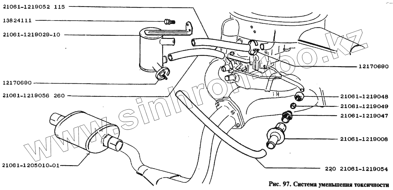 Каталог запасных частей к технике: ВАЗ-2105. Система уменьшения токсичности