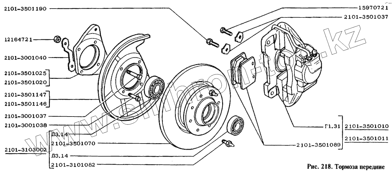 Каталог запасных частей к технике: ВАЗ-2105. Тормоза передние