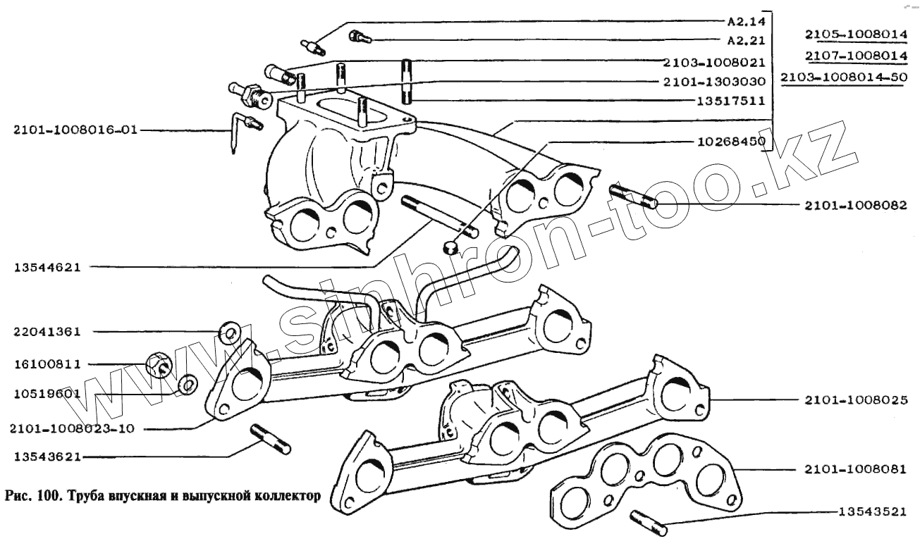 Каталог запасных частей к технике: ВАЗ-2105. Труба впускная и выпускной коллектор