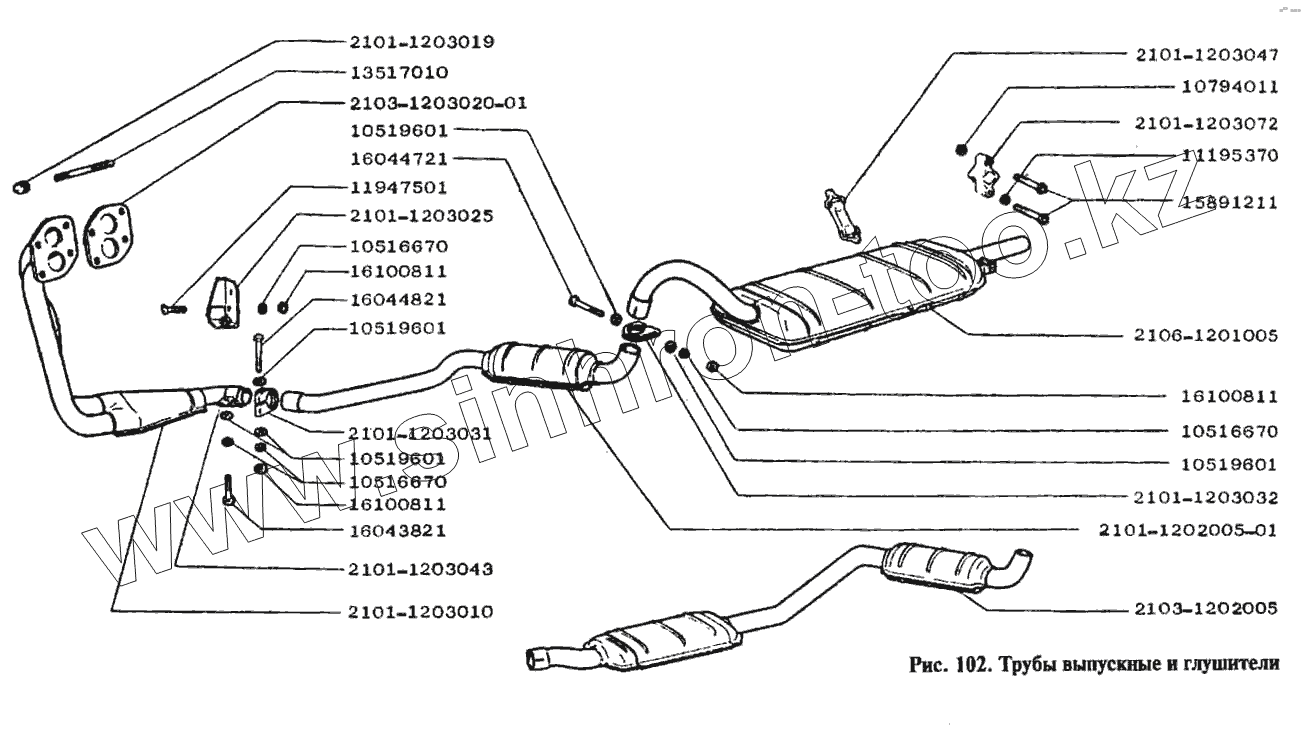 Каталог запасных частей к технике: ВАЗ-2105. Трубы выпускные и глушители