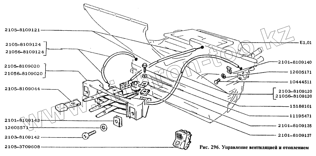 Каталог запасных частей к технике: ВАЗ-2105. Управление вентиляцией и отоплением