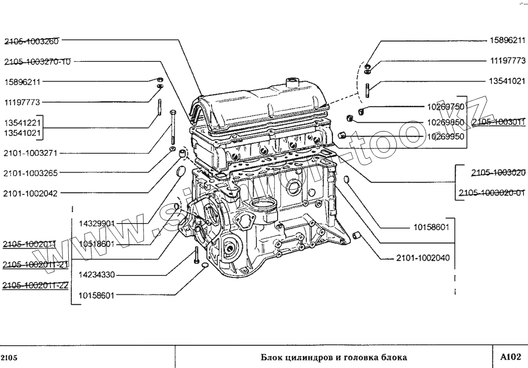 Каталог запасных частей к технике: ВАЗ-2105. Блок цилиндров и головка блока
