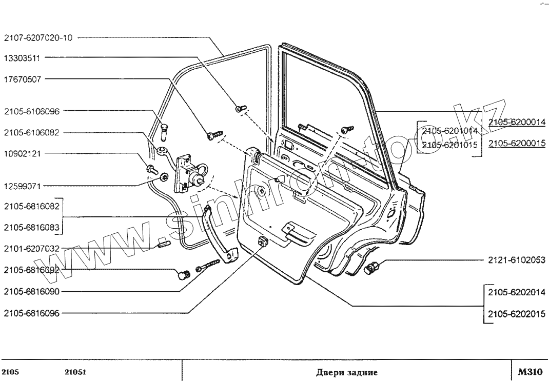 Каталог запасных частей к технике: ВАЗ-2105. Двери задние