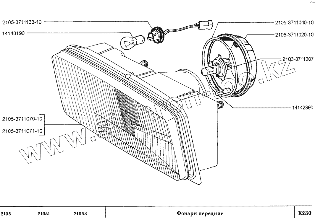 Каталог запасных частей к технике: ВАЗ-2105. Фонари передние