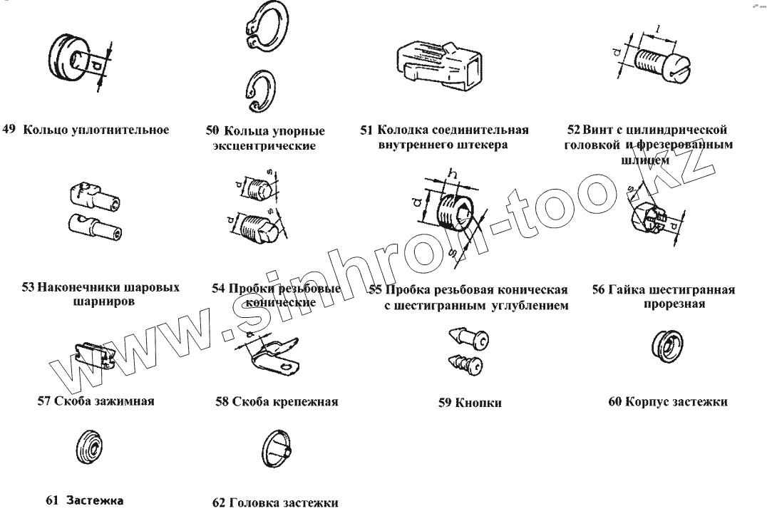 Каталог запасных частей к технике: ВАЗ-2105. Кольца, винты, гайки