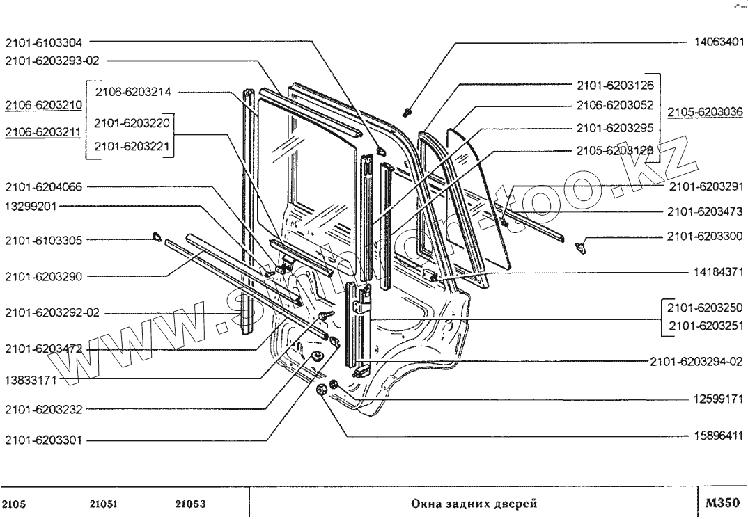 Каталог запасных частей к технике: ВАЗ-2105. Окна задних дверей