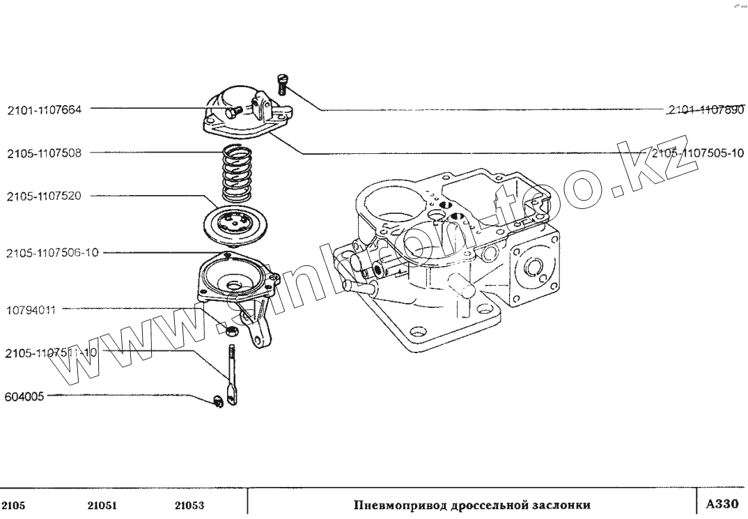 Каталог запасных частей к технике: ВАЗ-2105. Пневмопривод дроссельной заслонки