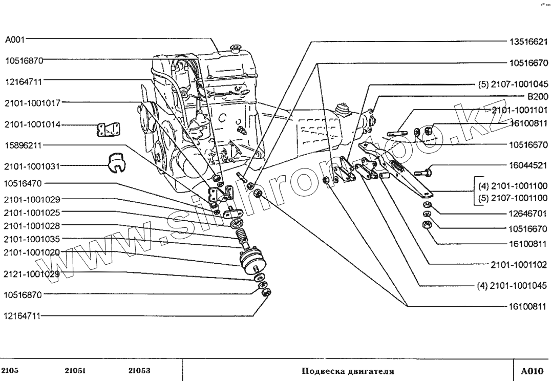 Каталог запасных частей к технике: ВАЗ-2105. Подвеска двигателя