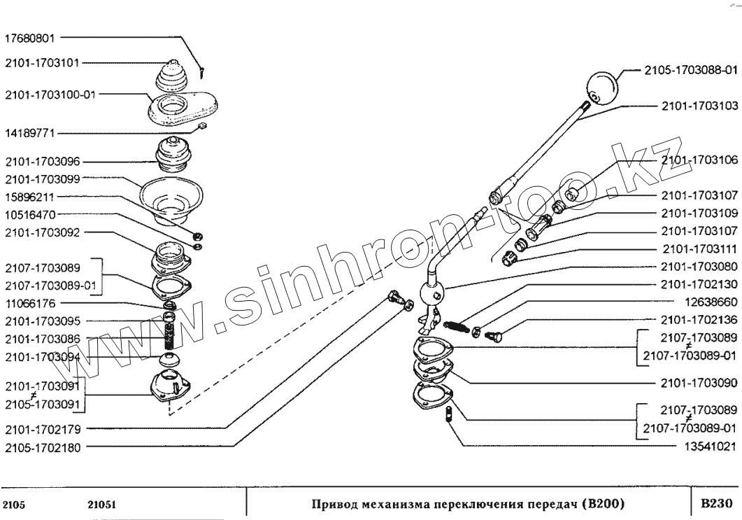 Каталог запасных частей к технике: ВАЗ-2105. Привод механизма переключения передач