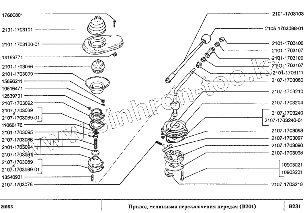 Каталог запасных частей к технике: ВАЗ-2105. Привод механизма переключения передач