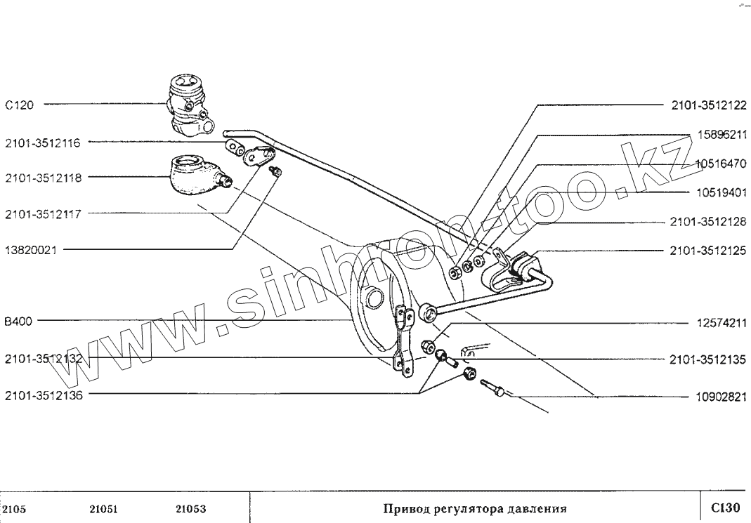 Каталог запасных частей к технике: ВАЗ-2105. Привод регулятора давления