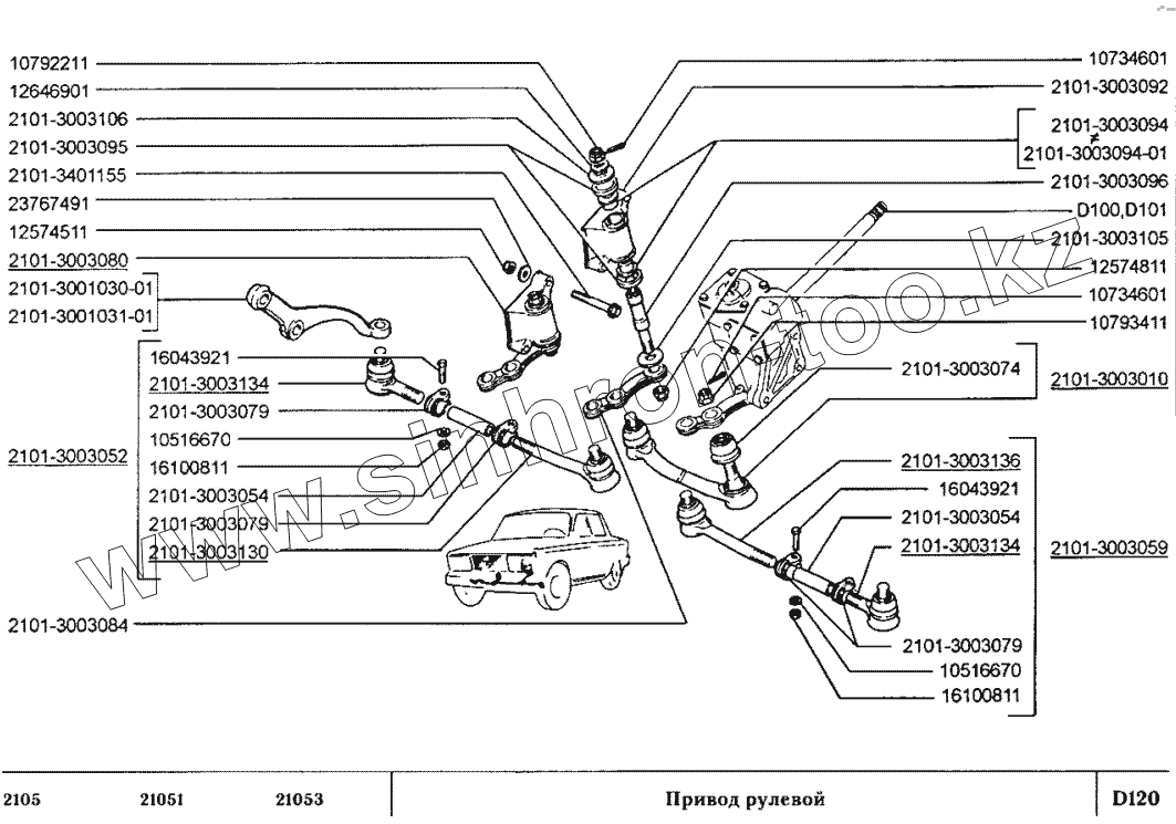 Каталог запасных частей к технике: ВАЗ-2105. Привод рулевой