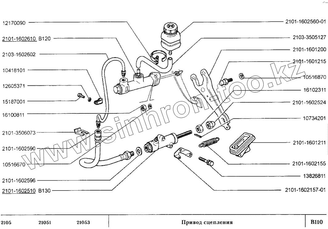 Каталог запасных частей к технике: ВАЗ-2105. Привод сцепления