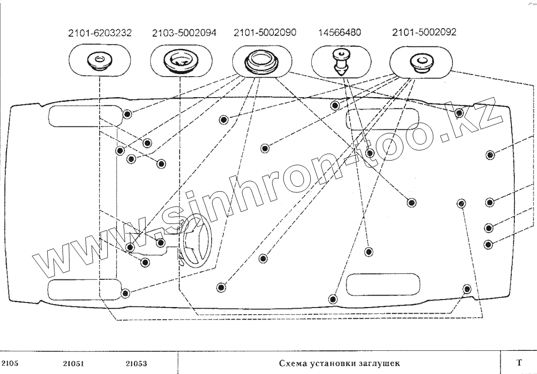 Каталог запасных частей к технике: ВАЗ-2105. Схема установки заглушек