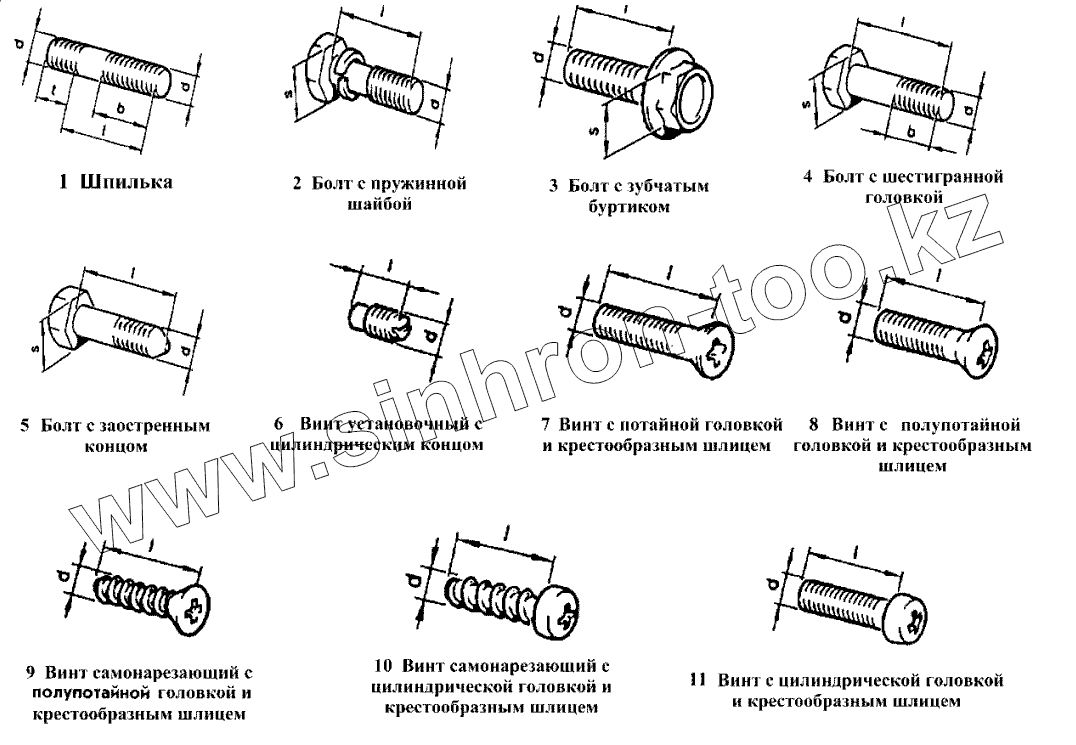 Каталог запасных частей к технике: ВАЗ-2105. Шпильки, болты, винты