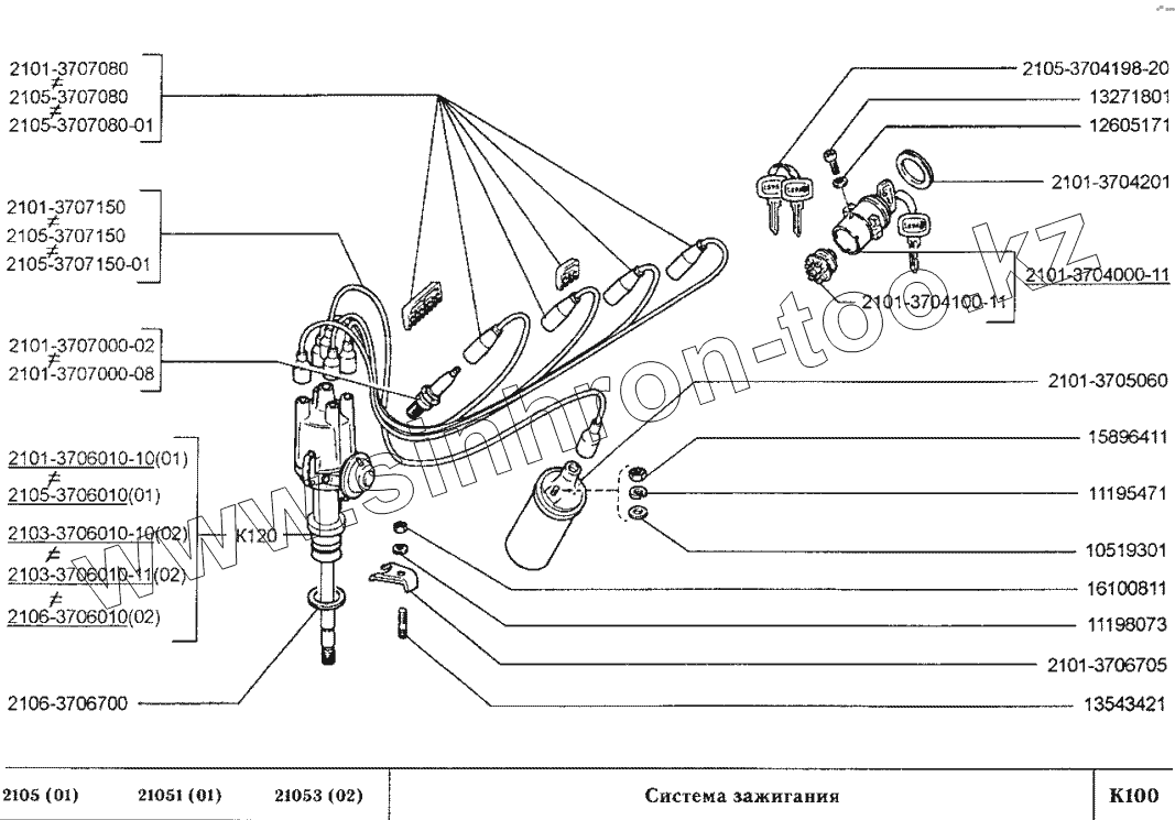 Каталог запасных частей к технике: ВАЗ-2105. Система зажигания