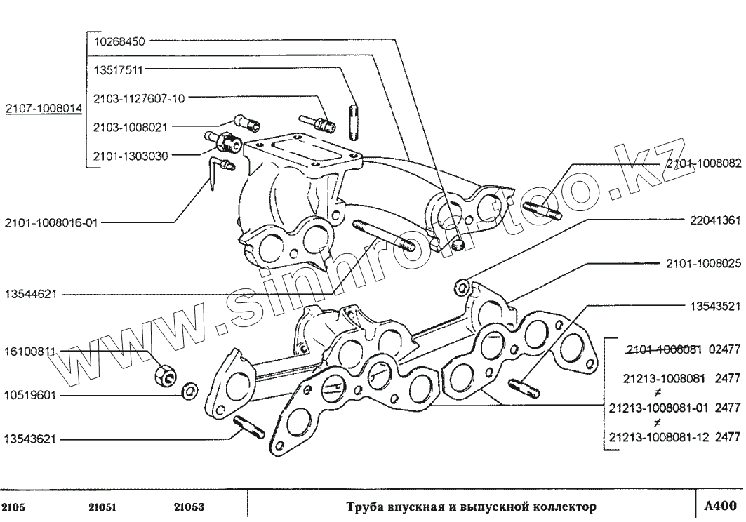 Каталог запасных частей к технике: ВАЗ-2105. Труба впускная и выпускной коллектор