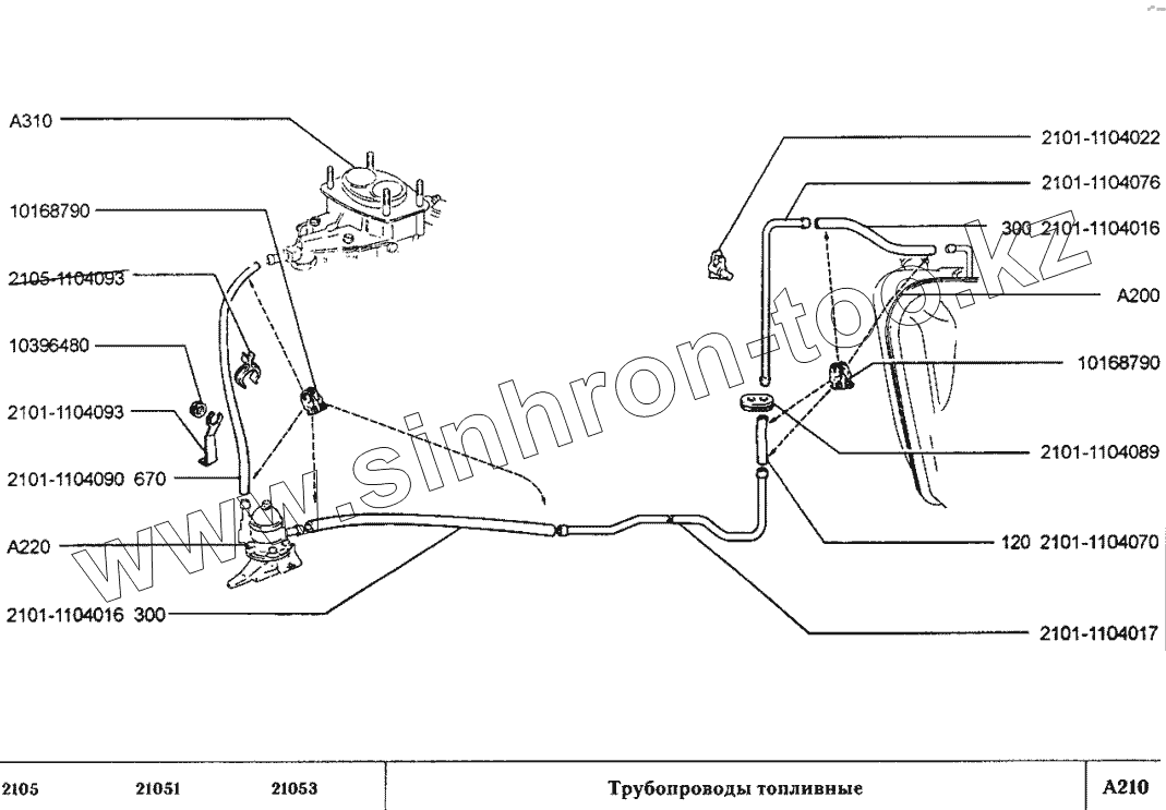 Каталог запасных частей к технике: ВАЗ-2105. Трубопроводы топливные
