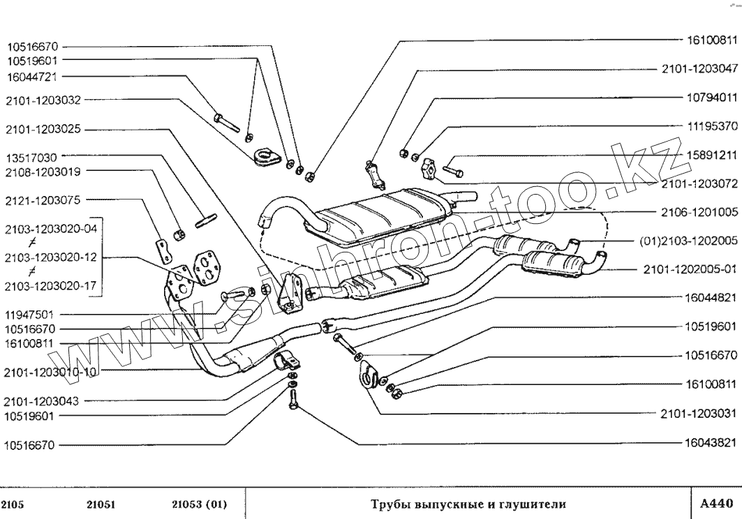 Каталог запасных частей к технике: ВАЗ-2105. Трубы выпускные и глушители