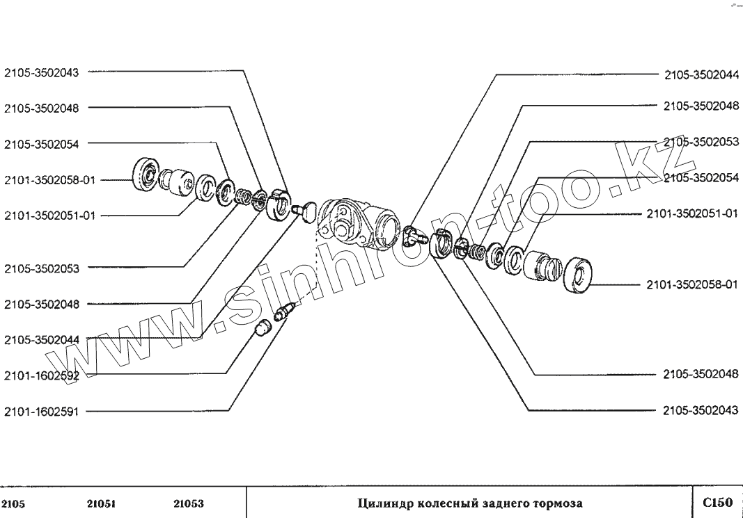 Каталог запасных частей к технике: ВАЗ-2105. Цилиндр колесный заднего тормоза