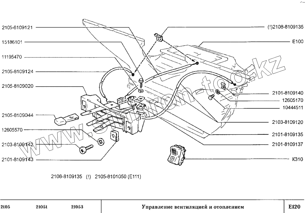 Каталог запасных частей к технике: ВАЗ-2105. Управление вентиляцией и отоплением