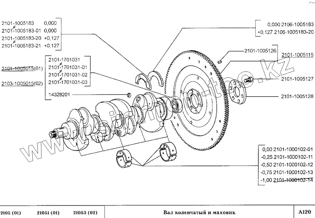Каталог запасных частей к технике: ВАЗ-2105. Вал коленчатый и маховик