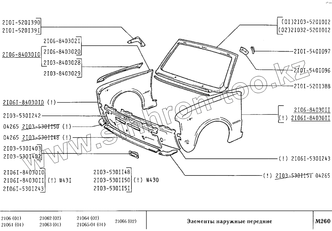 Каталог запасных частей к технике: ВАЗ-2106. Элементы наружные передние