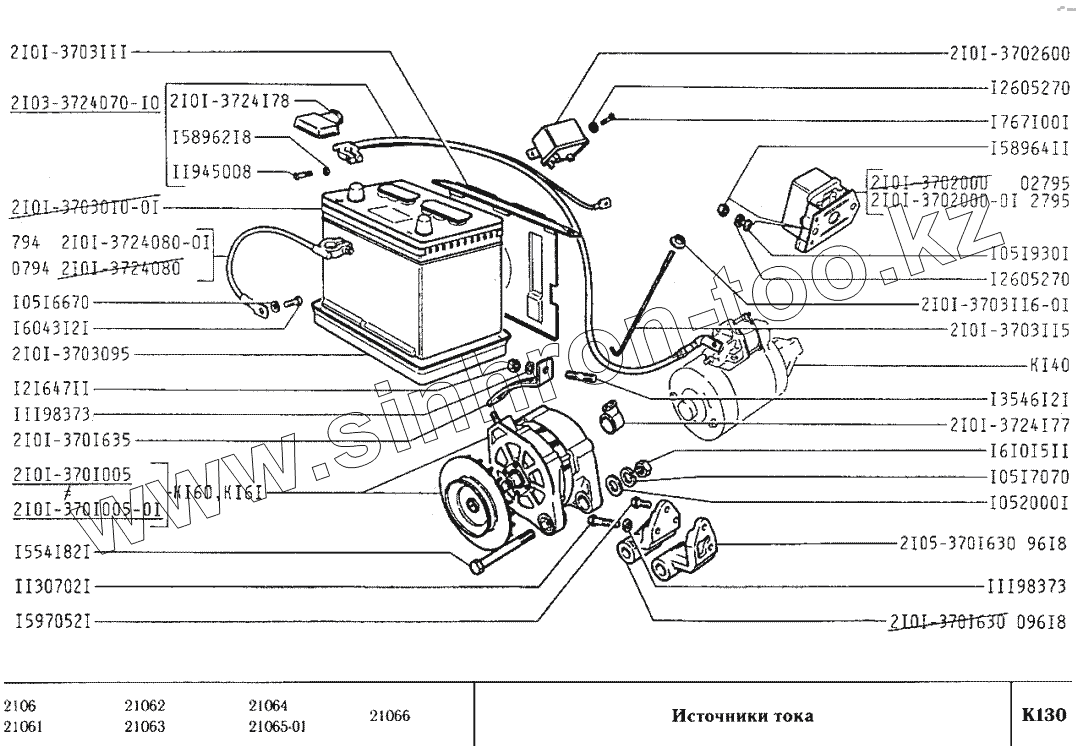 Каталог запасных частей к технике: ВАЗ-2106. Источники тока