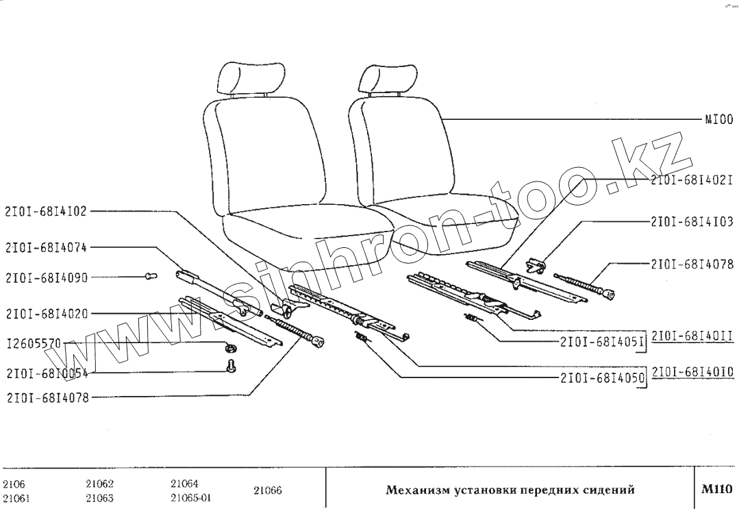 Каталог запасных частей к технике: ВАЗ-2106. Механизм установки передних сидений