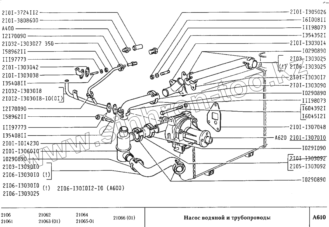 Каталог запасных частей к технике: ВАЗ-2106. Насос водяной и трубопроводы