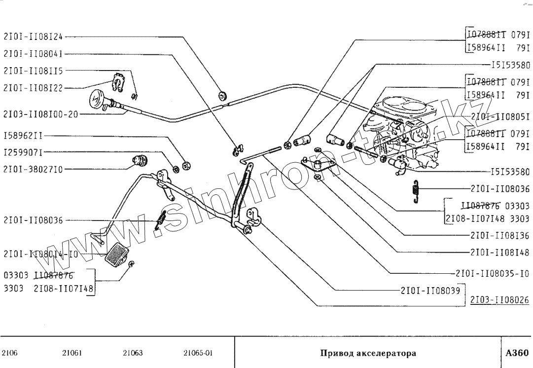 Каталог запасных частей к технике: ВАЗ-2106. Привод акселератора