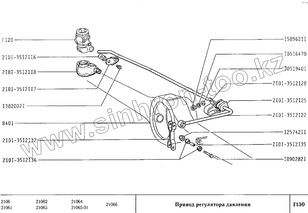 Каталог запасных частей к технике: ВАЗ-2106. Привод регулятора давления