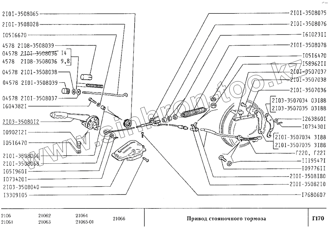Каталог запасных частей к технике: ВАЗ-2106. Привод стояночного тормоза