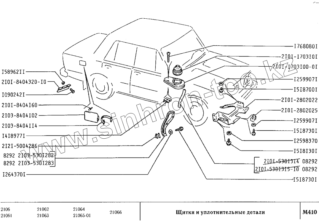 Каталог запасных частей к технике: ВАЗ-2106. Щитки и уплотнительные детали